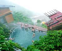 風呂の向こうは登山道、立ち上がると丸見え !!