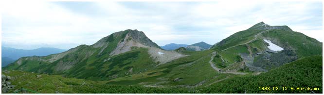 村営頂上宿舎より少し南(杓子岳方向)から旭岳、白馬岳を見る