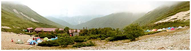 常念小屋とテント場