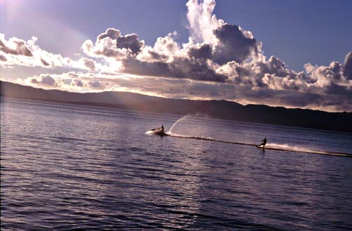 地元の若者が気持ち良さそうに海を滑る