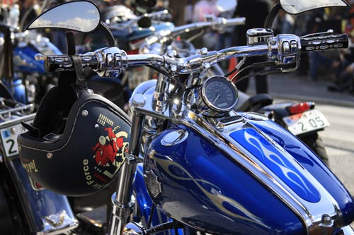 日差しを受けたタンクのブルーが鮮やかに浮かぶ