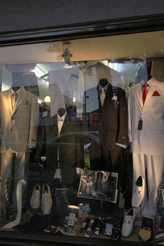 高そうなスーツが飾られたウインドー 高報酬の軍関係者が常連なのだろうか