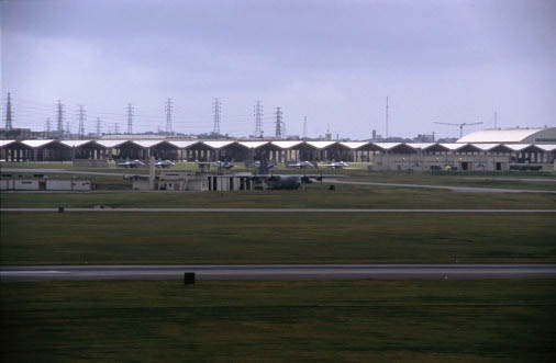 極東最大の米軍基地・嘉手納飛行場 4000mの滑走路を2本備える 塀で囲まれた敷地内は 近くに完成した道の駅の展望台から一望できる