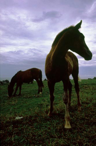 在来種の与那国馬 人懐っこくてのんびり屋で、やさしい目をしている