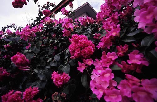 石畳沿いや裏通りに並ぶ家々は、街並みを誇るように花を咲かせている