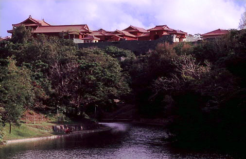 龍潭池から望む首里城 やっと晴れ間が見えはじめた
