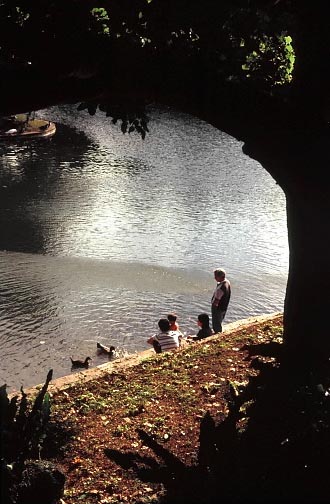 龍潭池の周囲はとても静か ゆったり過ごす地元の人たちがいつもいる