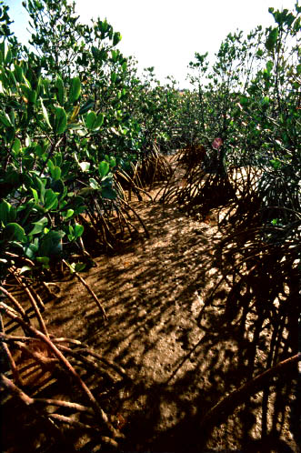 西表島に面した石長田海岸にはヒルギ群落が広がる 足元を跳ねるトビハゼからも亜熱帯を実感する