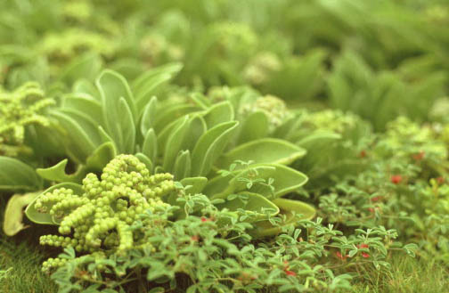 最南端の碑の周囲に生息する植物たち いつも潮風にさらされて大きくはならないが、たくましく成長している