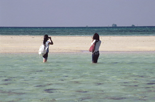 島旅の思い出をカメラに収める人たち この景色がいつまでも変わらぬよう祈りながら
