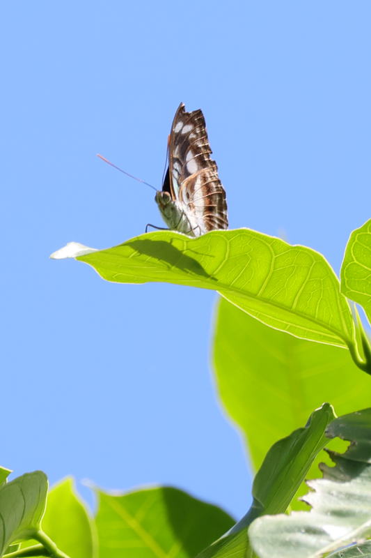 ★見上げる位置にとまったヤエヤマイチモンジです。