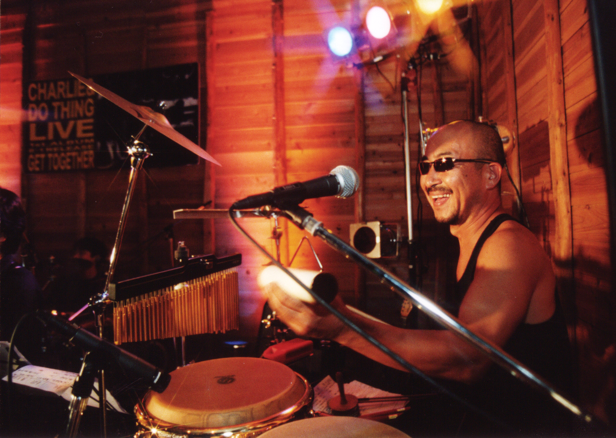 鍛えた肉体から放たれるパワフルなパーカッションサウンドは見る者のどてっ腹に響く